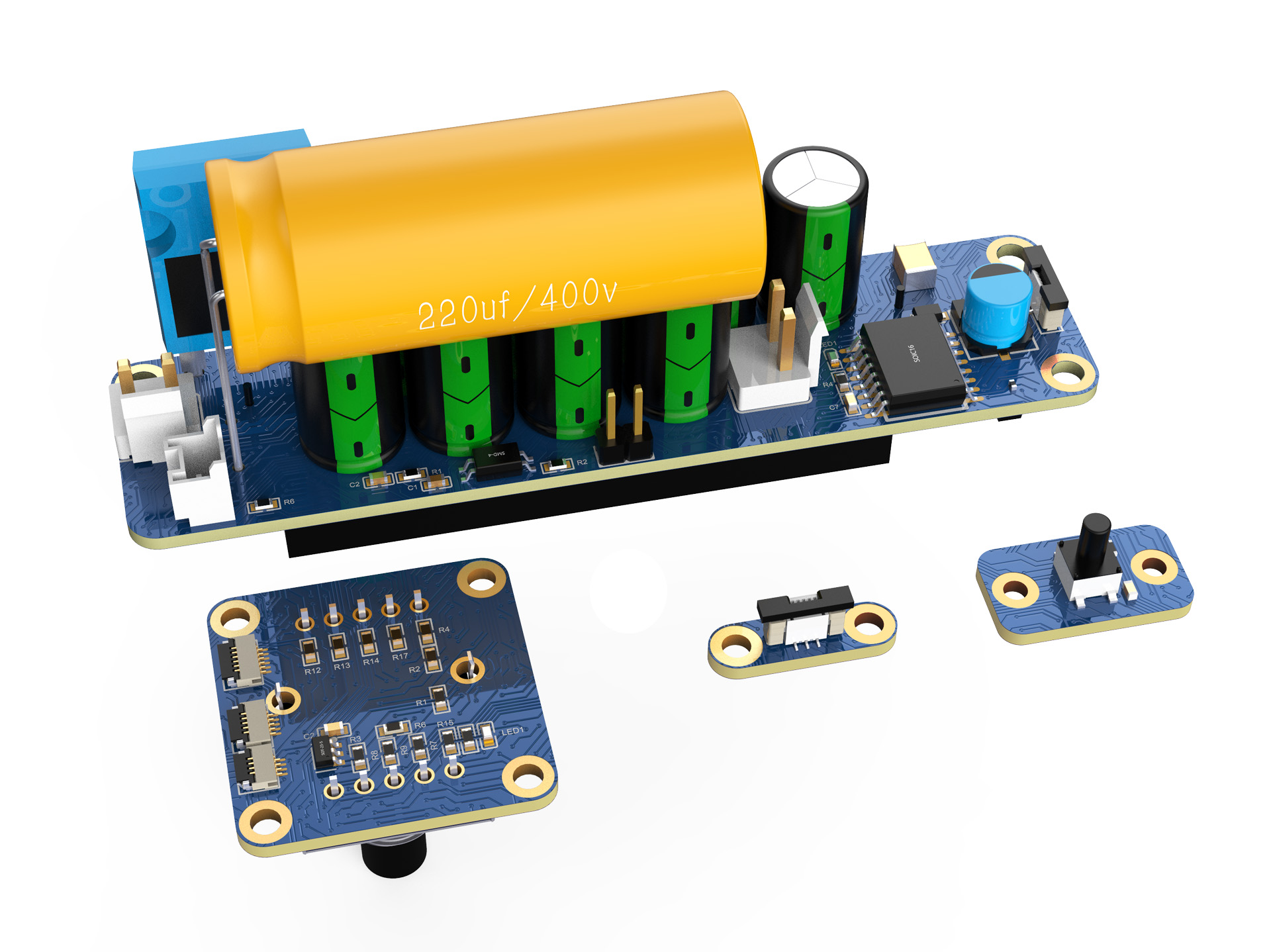 本骨骼纠正机由四块电路板组成,包括两块主机电路板、一块旋钮电路板及一块遥控器电路板,共同实现设备的精准控制与安全运行。主机电路板的核心功能包括输出调整、状态指示与驱动控制:输出调整模块支持8级档位功率调节,用户可通过旋钮或遥控器选择合适档位,满足不同纠正强度需求。驱动板模块集成功率输出、过零检测、状态检测与能量储备功能,确保设备高效稳定运行,同时内置过流、过压保护,保障使用安全。位置检测模块通过传感器实时监测设备状态,确保在安全条件下启动运行,避免误操作。旋钮电路板与遥控器电路板采用低功耗设计,支持无线通信与手动调节,提供便捷的操作体验。PCB布局采用多层板设计,优化信号完整性与散热性能,确保设备在长时间运行中的稳定性。通过严格的性能测试与安全验证,电路板具备高可靠性、精准控制与用户友好性,适用于骨骼纠正设备,为用户提供安全、高效的健康管理解决方案。
